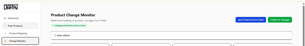 Screenshot 7: Change Monitor page with "Sync Products from Treez" button