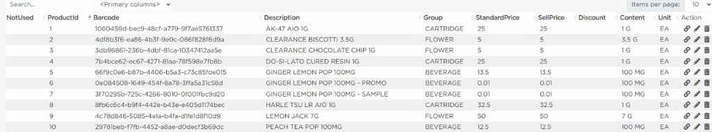 Screenshot 5: Admin dashboard showing fetched Treez products with all details